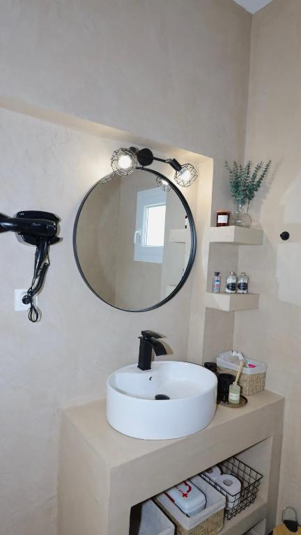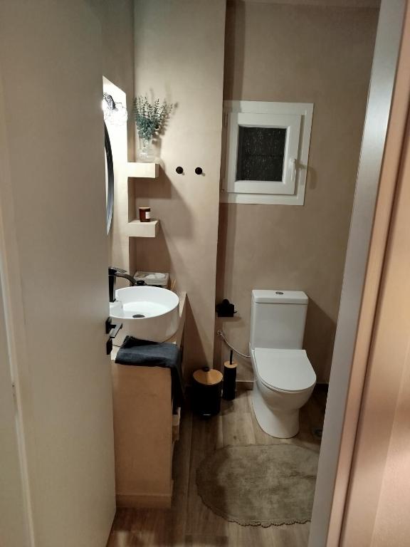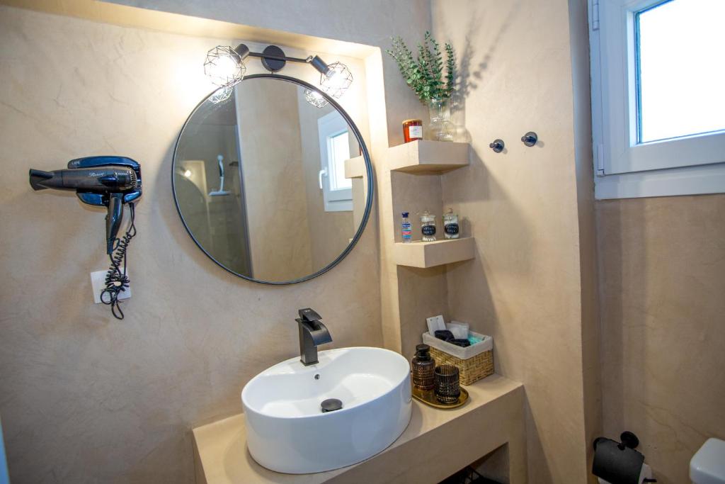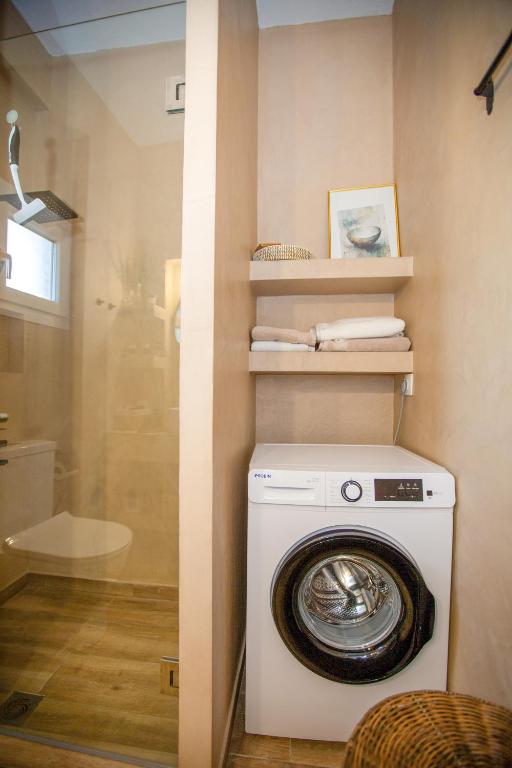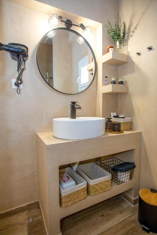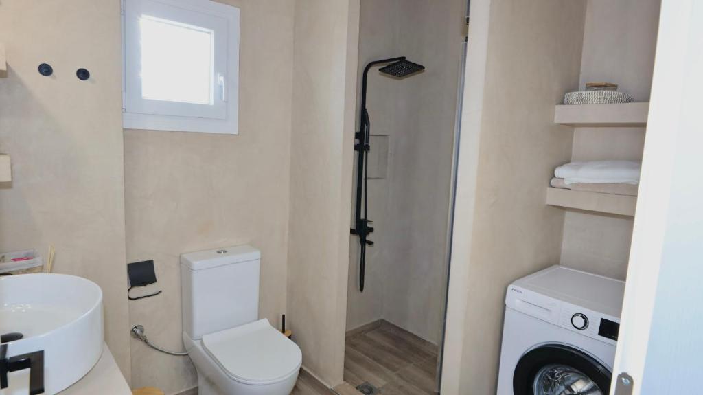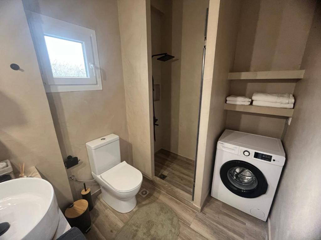 Το μπάνιο είναι μοντέρνο και προσεγμένο, εξοπλισμένο με ντους και όλα τα απαραίτητα είδη για την άνεση των επισκεπτών. Παρέχονται επίσης βασικά προϊόντα περιποίησης, καθώς και στεγνωτήρας μαλλιών, εξασφαλίζοντας μια ευχάριστη και πρακτική εμπειρία διαμονής.